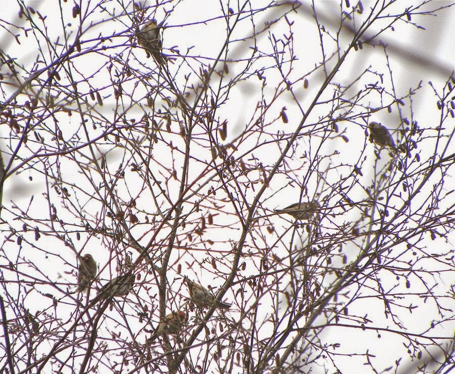 Seven redpolls in Egypt Woods were an improvement on the two I saw near the moat last time. Later on, looking in an old area for them in Burnham Beeches, I found a flock of fifteen. These seven are part of the Beeches flock.