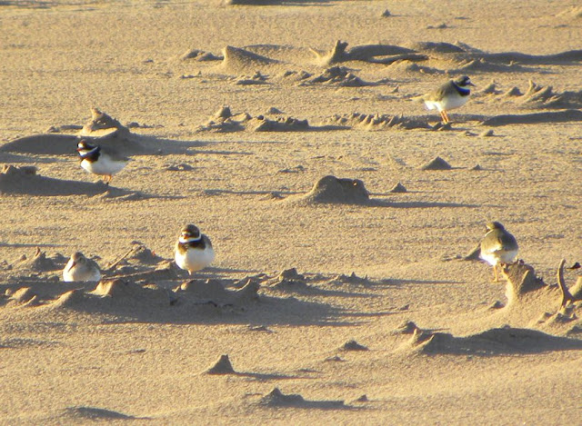 A dunlin was hunkering down with half a dozen ringed plovers.