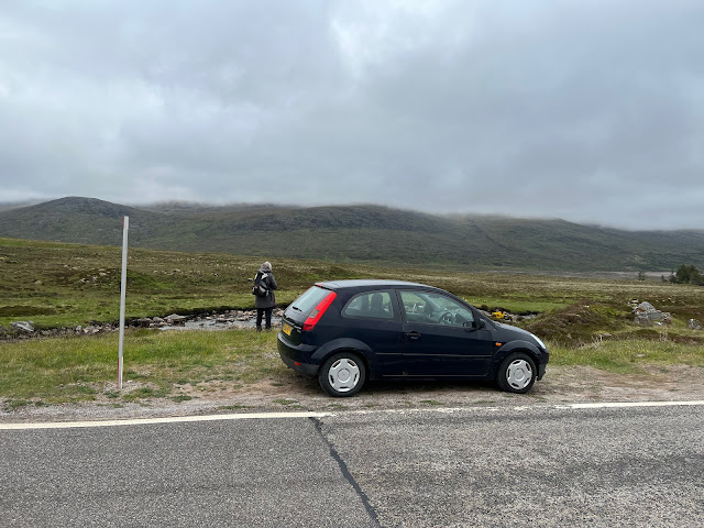 Walking back, we looked along Loch a' Bhraoin and recalled walking its length back in May 2016, when we went up the Corbett Creag Rainich - the rounded hill to the right in the picture below. Just showing behind its flanks is one of the remote Munros of the Fisherfield Forest, while the distant rugged hill beyond is Slioch, which rises from the banks of Loch Maree and which I climbed long ago. Long ago.